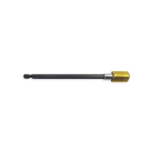 A screwdriver drill bit holder is a device that attaches to a drill and holds a screwdriver bit in place. It allows the user to drive screws with a power tool instead of a manual screwdriver. A screwdriver drill bit holder usually has a 1/4-inch hex shank that fits into any drill with a compatible chuck. Some screwdriver drill bit holders have magnetic bases that help secure the bits and prevent them from falling out. Some also have features such as hex nut and bolt drivers, which are useful for self-drilling screws, or bit holders for drywalling, which are designed to prevent overdriving the screws into the wall.
